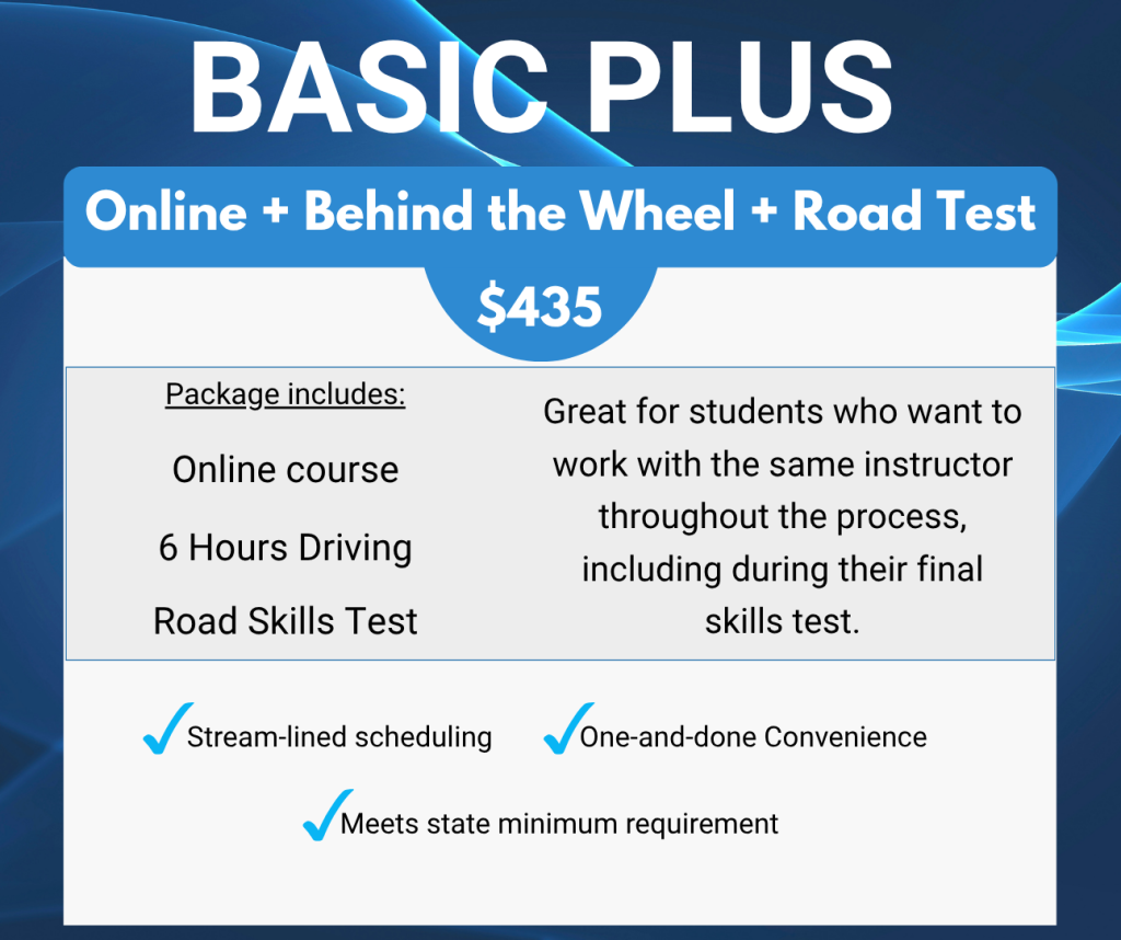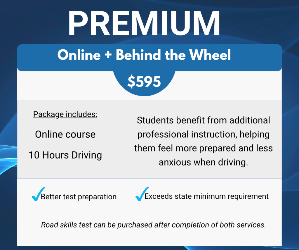 Online Class + Behind the Wheel Packages: $395 – $635